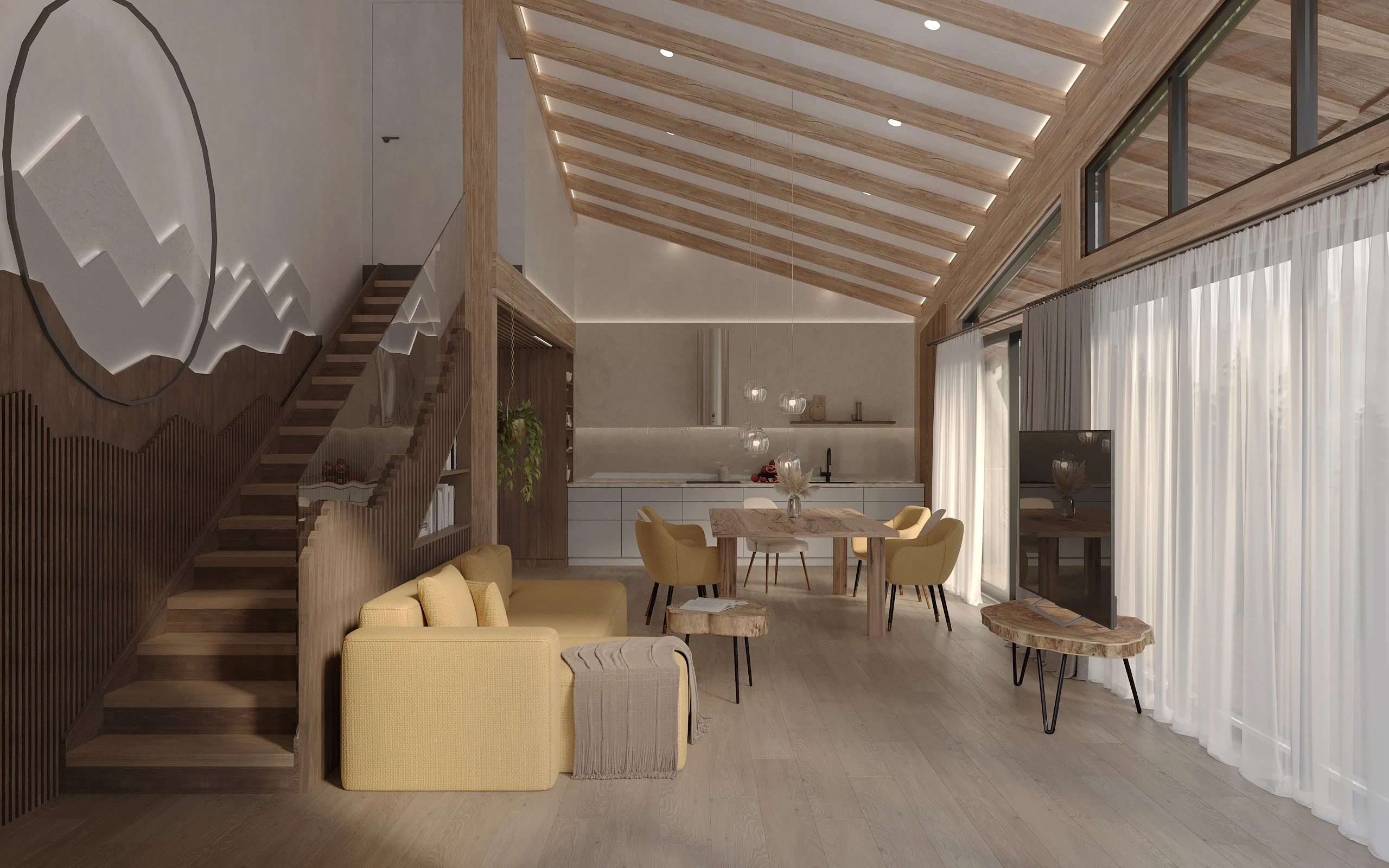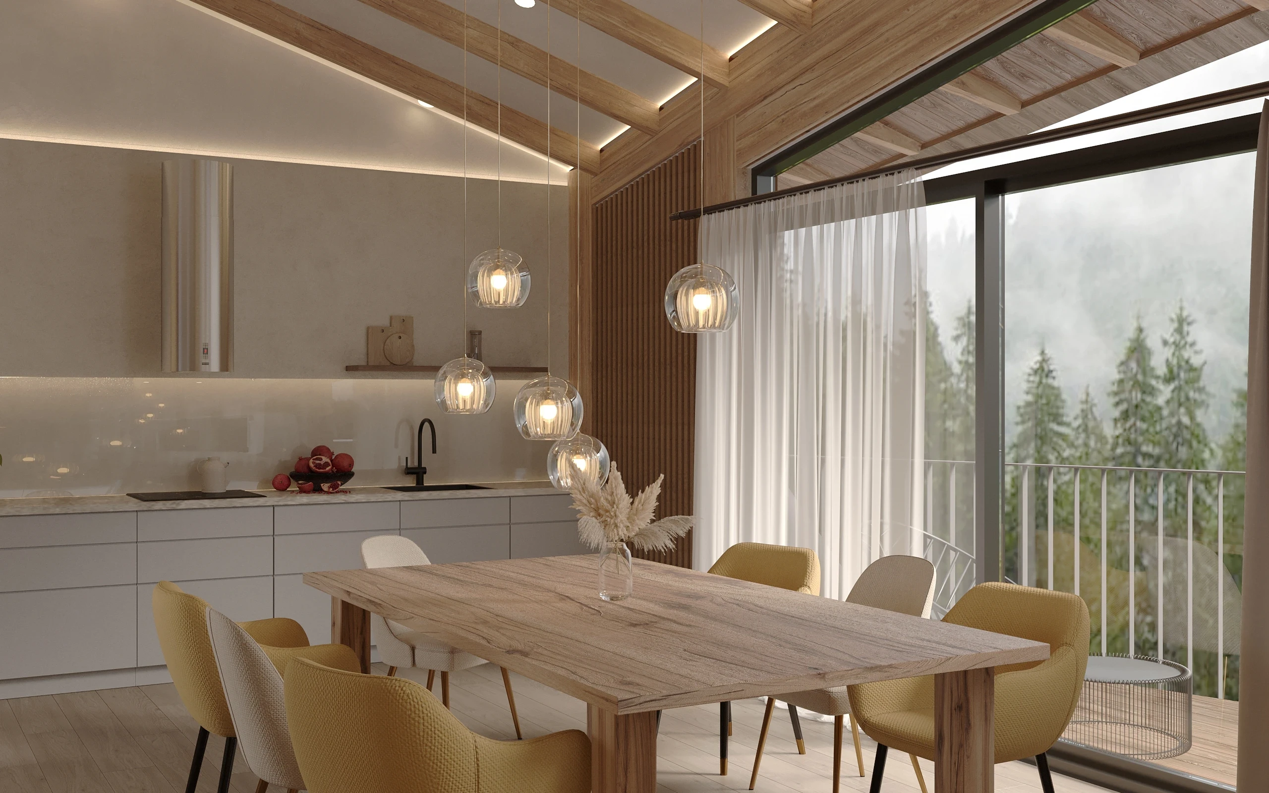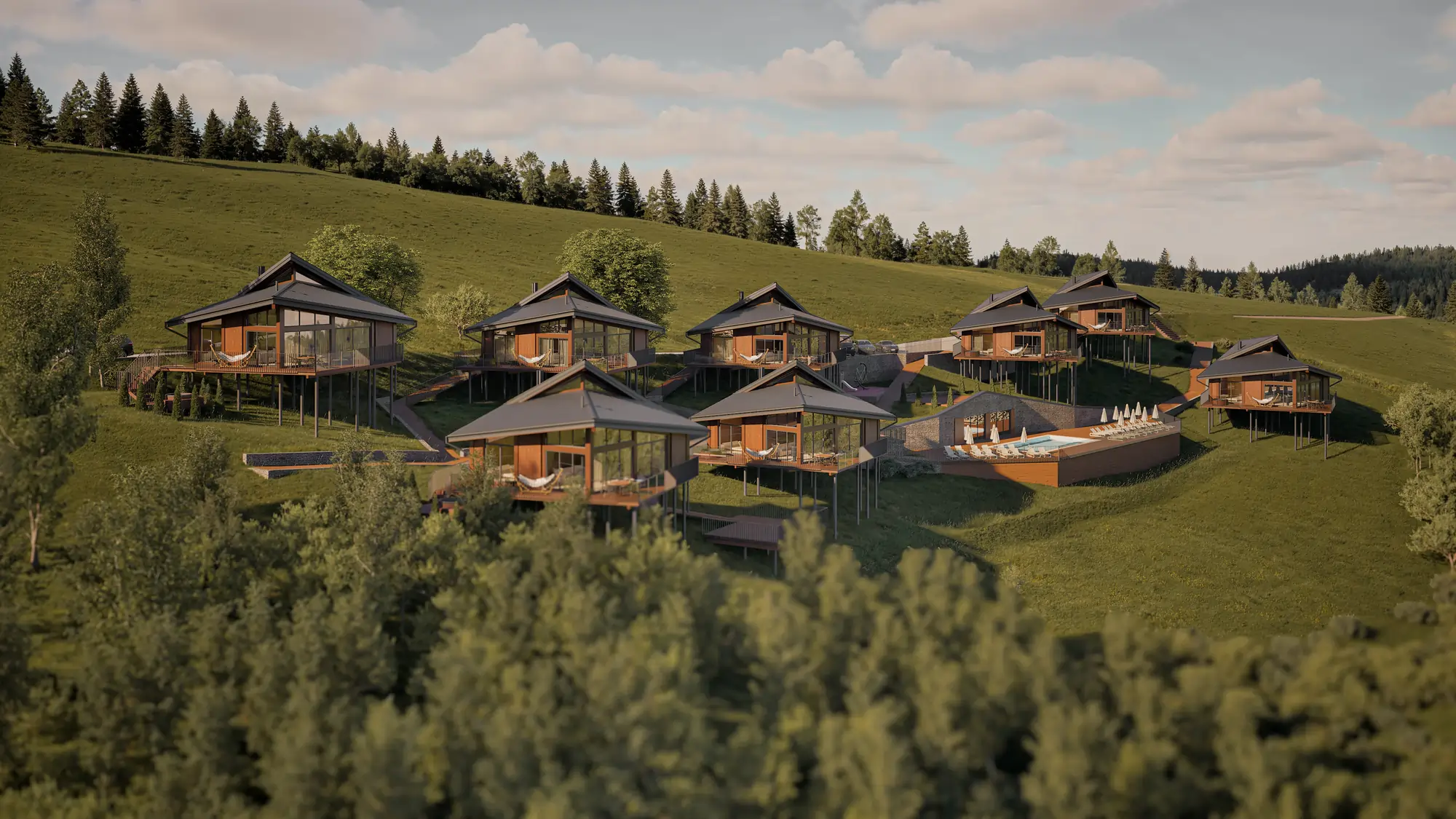 Ми використовуємо екологічні матеріали преміум-класу: дерево, камінь, метал, натуральні покриття. Розумні системи управління — тепло, охолодження, електрика, Wi-Fi-моніторинг, керування освітленням. Тепла підлога, тераси з панорамними вікнами, шумоізоляція та утеплення — усе створене для комфорту в будь-яку пору року.