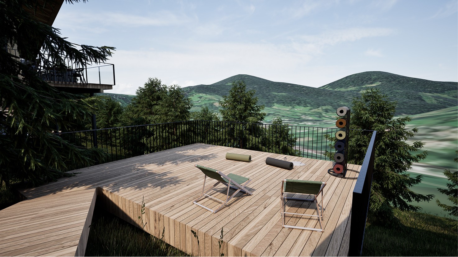 Зона для медитацій і йоги з видом на гори
